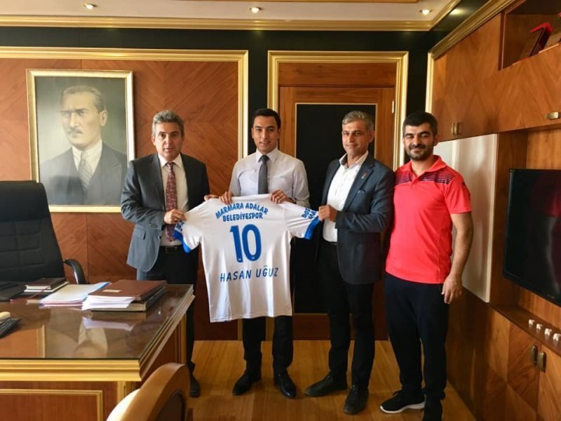 Başkanımız Süleyman Aksoy, Marmara Adalar Belediyespor Antrenörü Mustafa Gündoğan ve MHP İlçe Başkanı Özkan Öztürk ile birlikte Kaymakamımız Hasan Uğuz’ u ziyaret ederek 10 numaralı Marmara Adalar Belediyespor forması hediye etti.