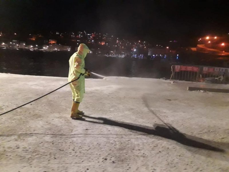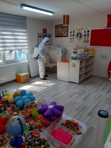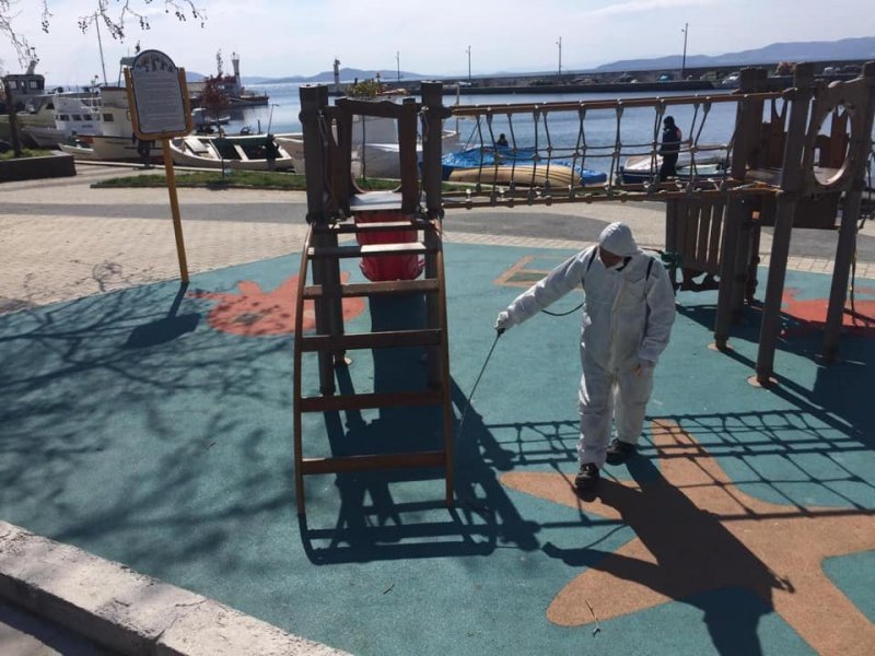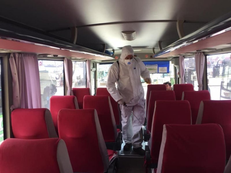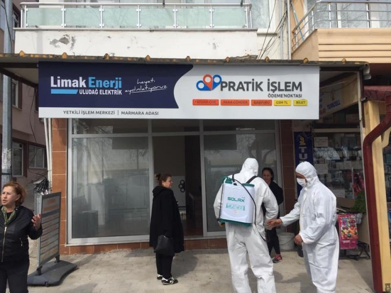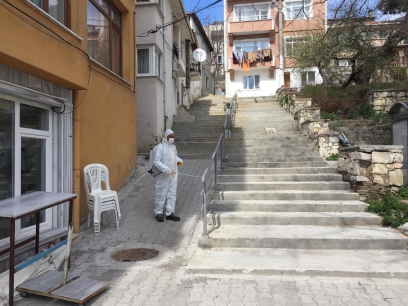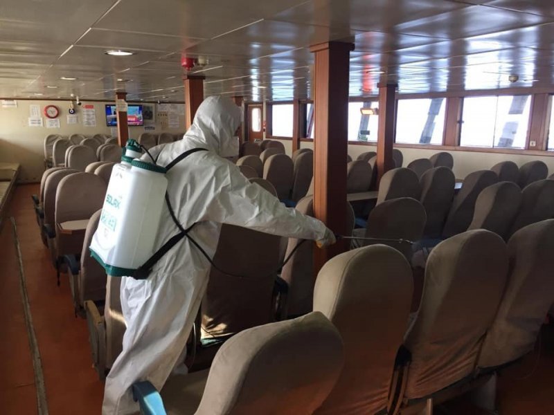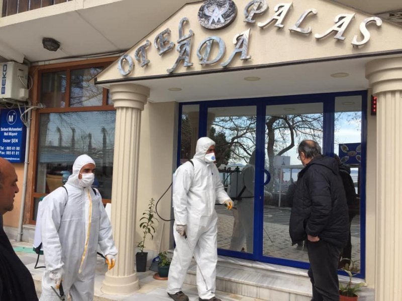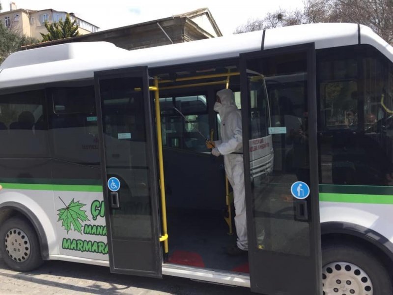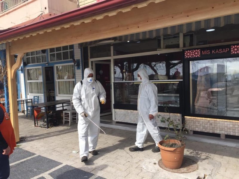 Kamu kurumları, özel işletme ve iş yerleri, okullar, parklar, mescitler, camiler, gemiler, minibüsler, caddeler, iskele meydanları, bekleme salonlarında yapılan dezenfekte çalışmaları ile tedbiri elden bırakmıyoruz.