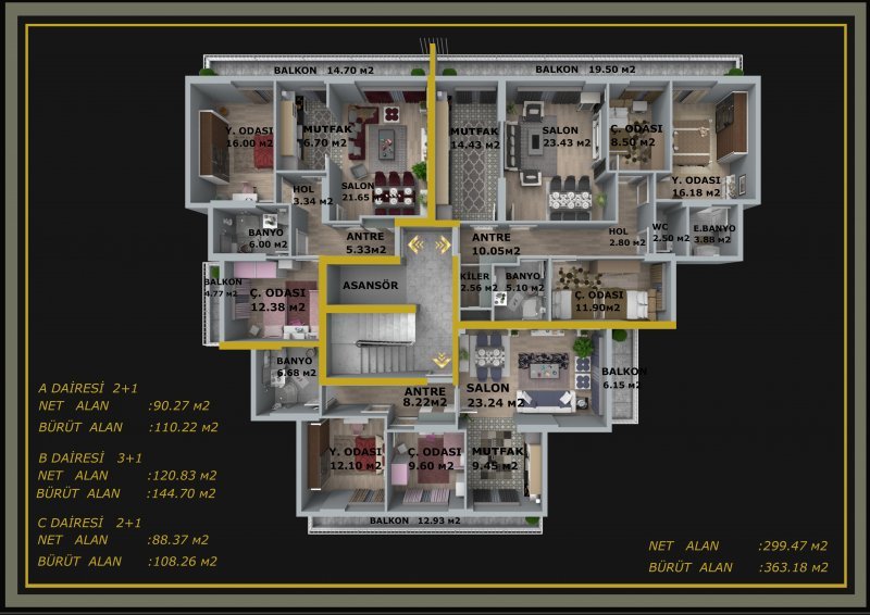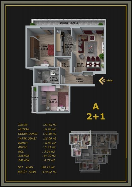 Kalite ve güvenliğin yanı sıra konforlu bir mekan yaratmak için 2+1 ve 3+1 dairelerimizi beğenilerinize sunuyoruz. Hayallerimizi birlikte gerçekleştireceğiz. Hayırlı uğurlu olsun.
