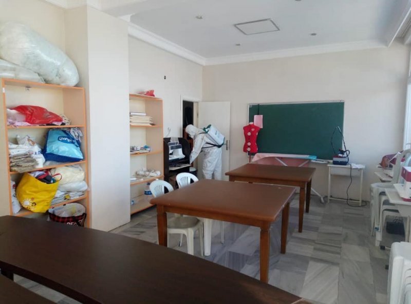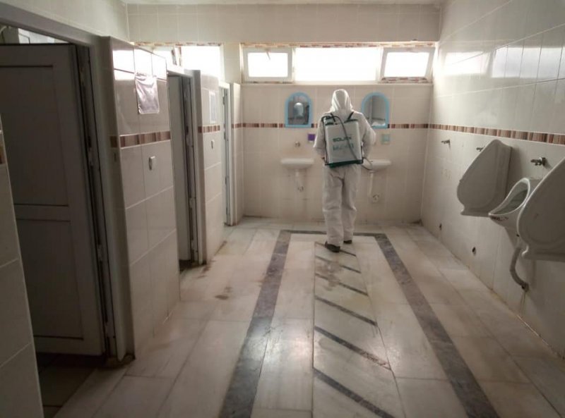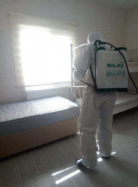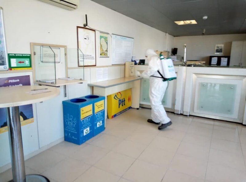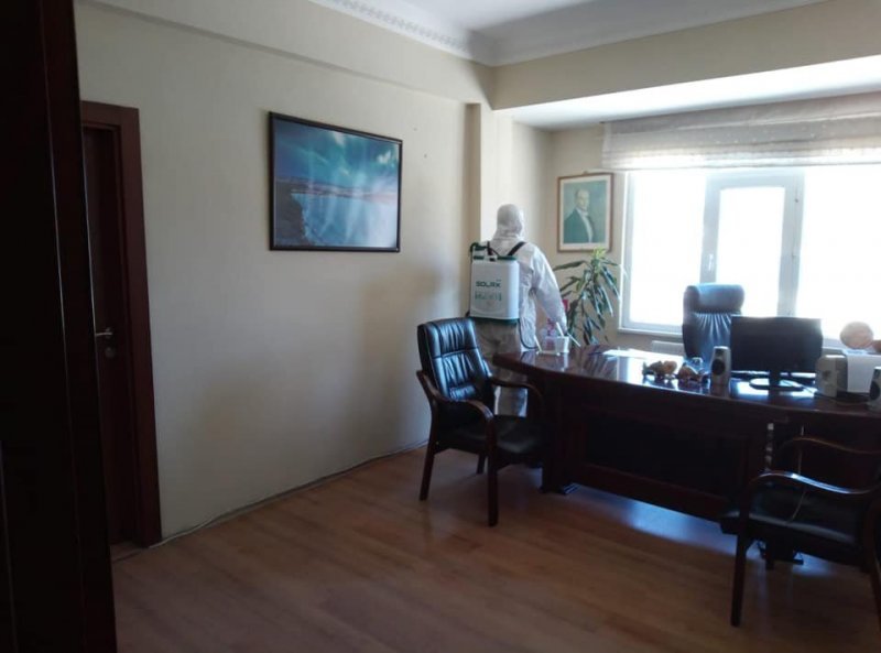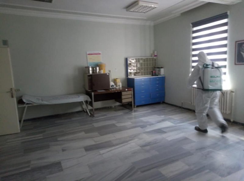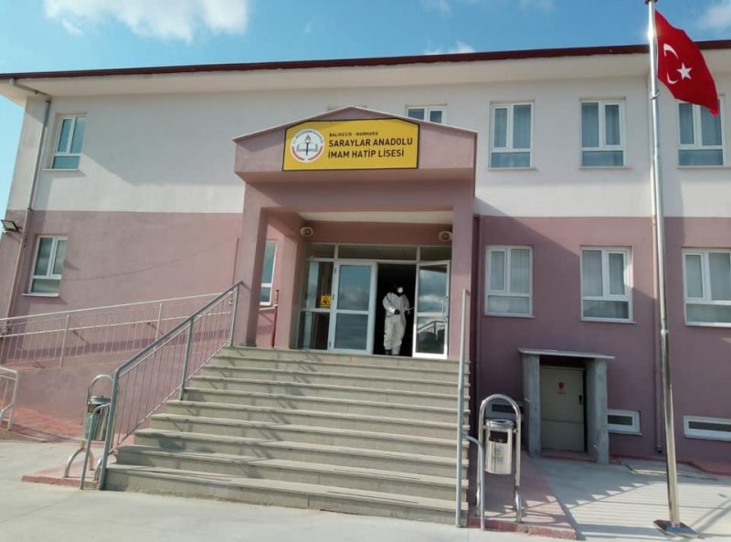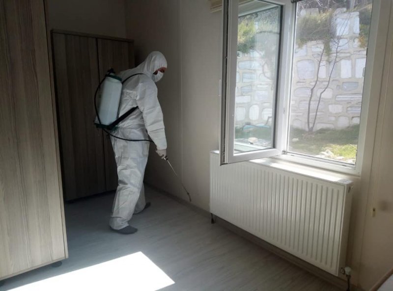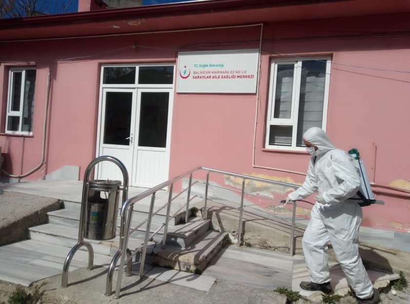 Saraylar’da dezenfekte çalışmaları konferans salonu, balmek binası, cami, sağlık ocağı, 112 istasyonu ve okullarda gerçekleştirildi.