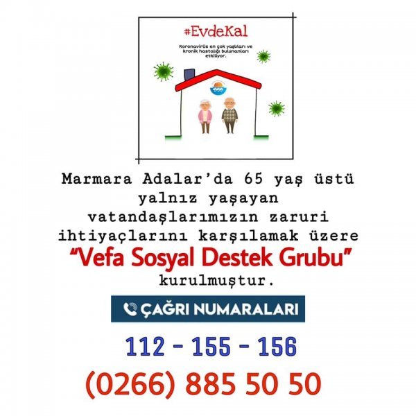 Marmara Adalar’da 65 yaş üstü yalnız yaşayan vatandaşlarımızın zaruri ihtiyaclarını karşılamak üzere “Vefa Sosyal Destek Grubu” kurulmuştur.